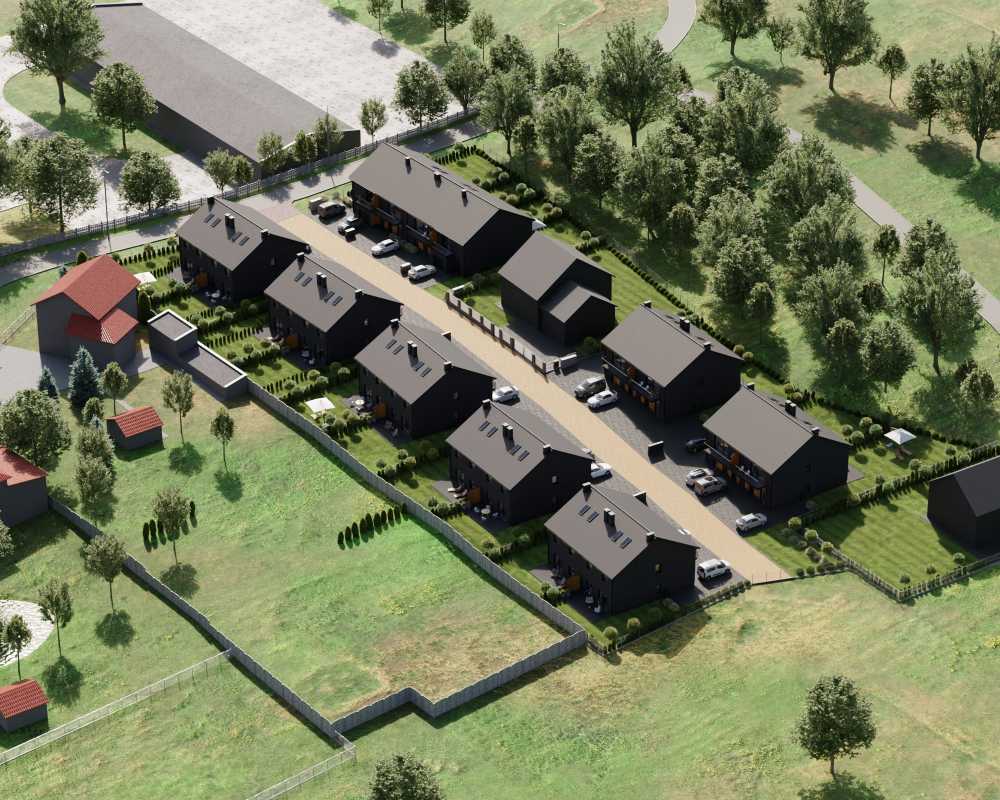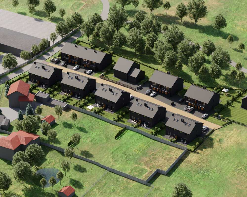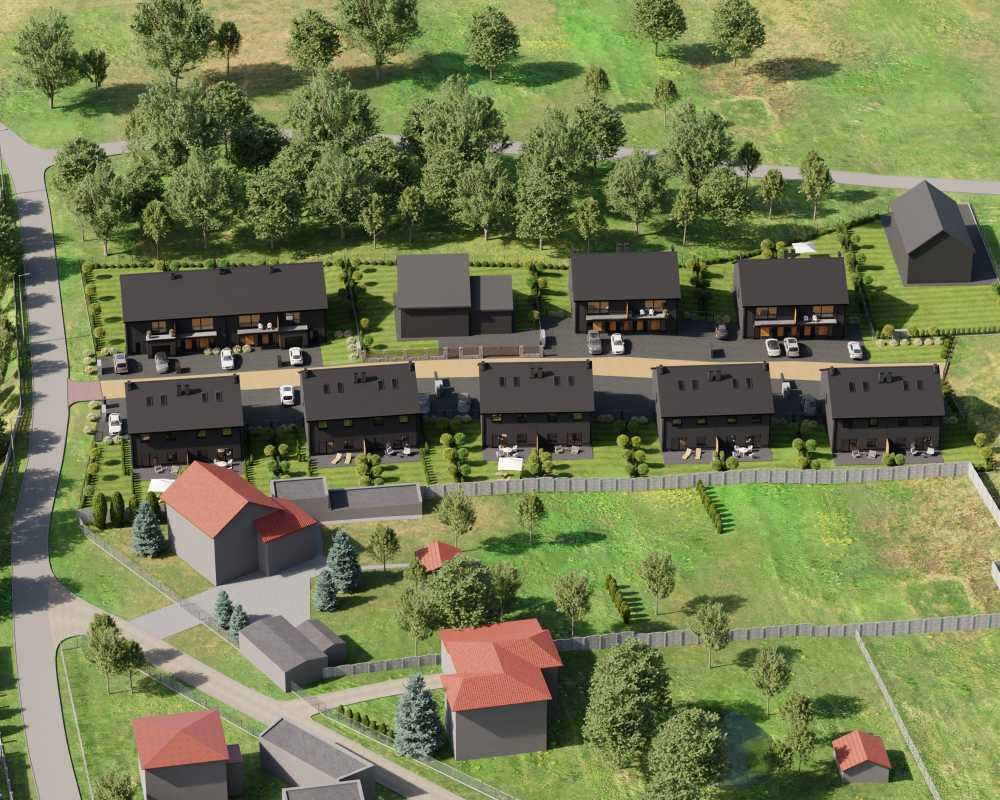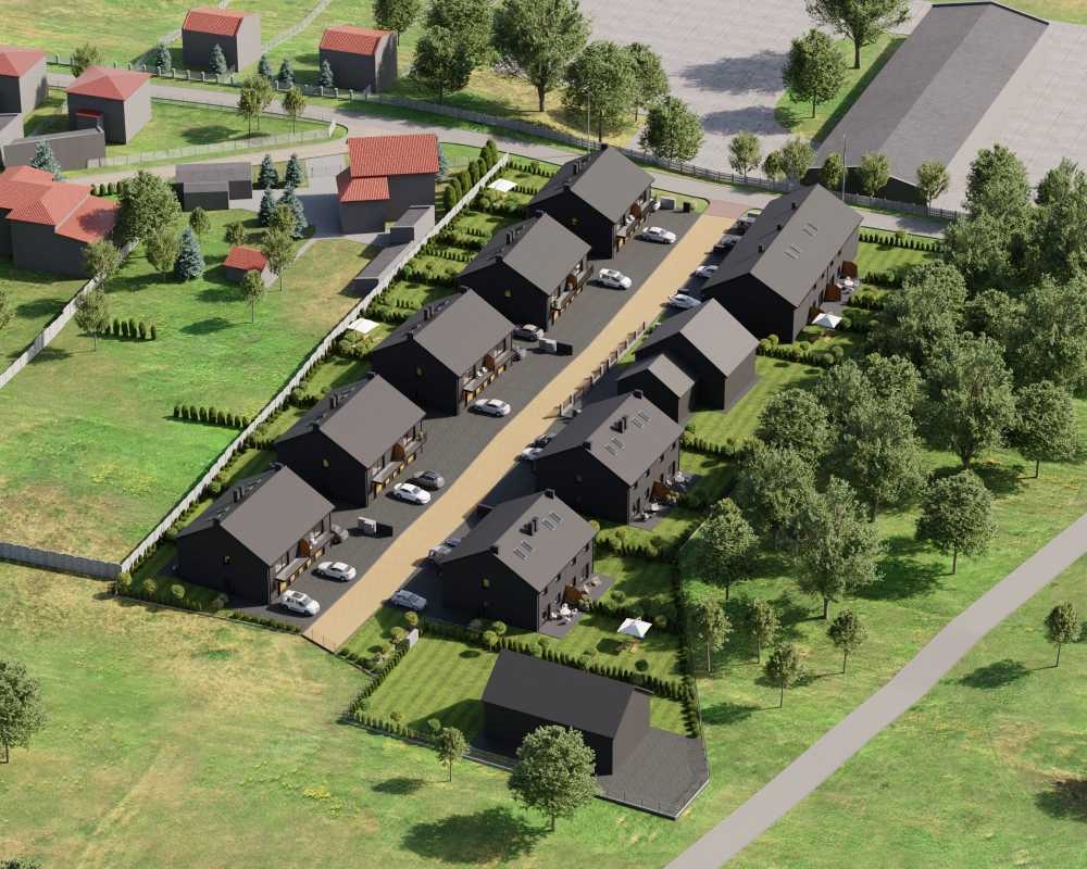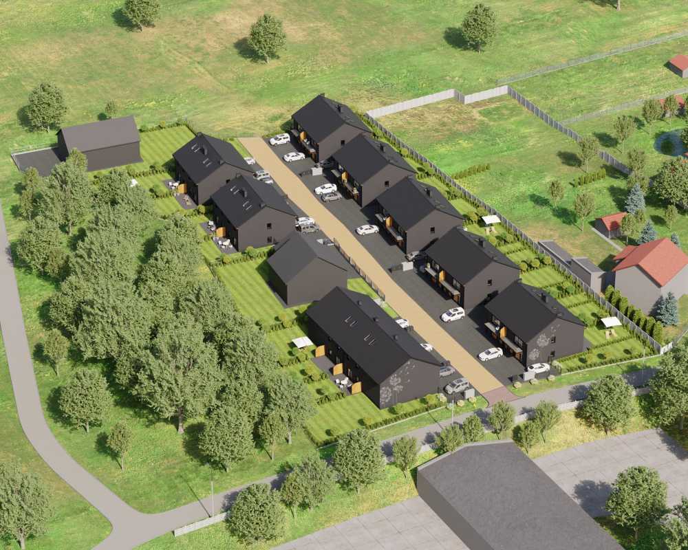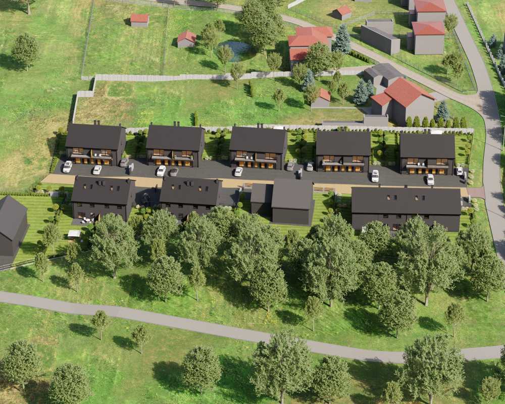 Mieszkania w budynkach 4-lokalowych na parterze mają powierzchnię mieszkalną 62,5 m² oraz tarasy w ogródkach. Lokale na piętrze o powierzchni mieszkalnej 110 m² (piętro + antresola) posiadają przestronne balkony i duże antresole, na których można urządzić np. gabinet do pracy, dodatkową sypialnię czy domową siłownię. Wszystkie lokale mieszkalne w budynkach 4-lokalowych posiadają własny ogrodzony ogródek o powierzchni ok. 70-90 m², w których komfortowo można odpoczywać na świeżym powietrzu, a także część wspólną. W celu zapewnienia prywatności mieszkańcom zamontowane zostały stylowe parawany, oddzielające sąsiadujące tarasy na parterze oraz balkony na piętrze.