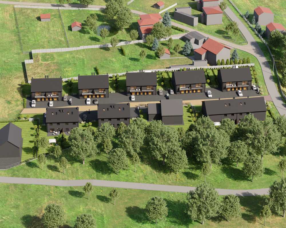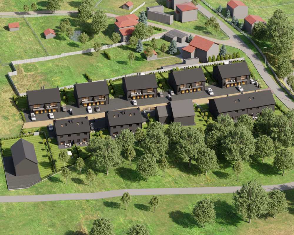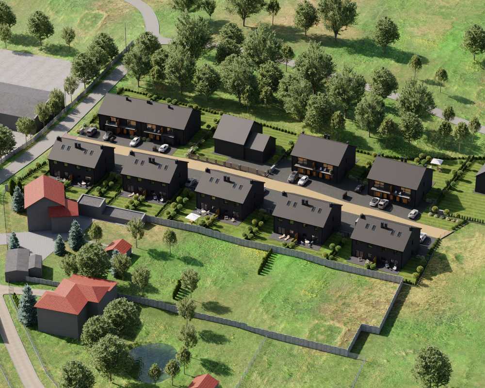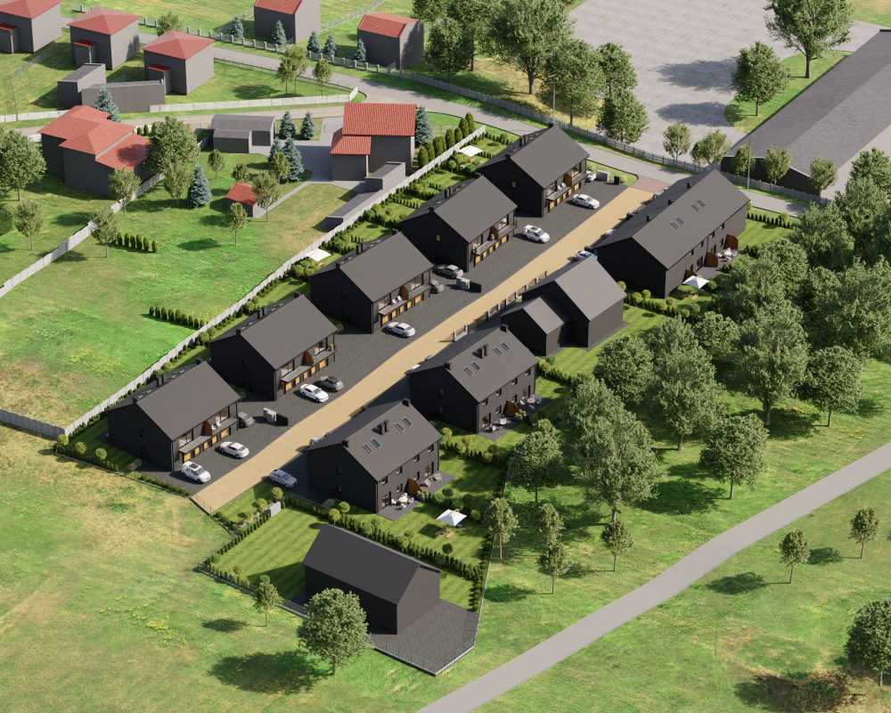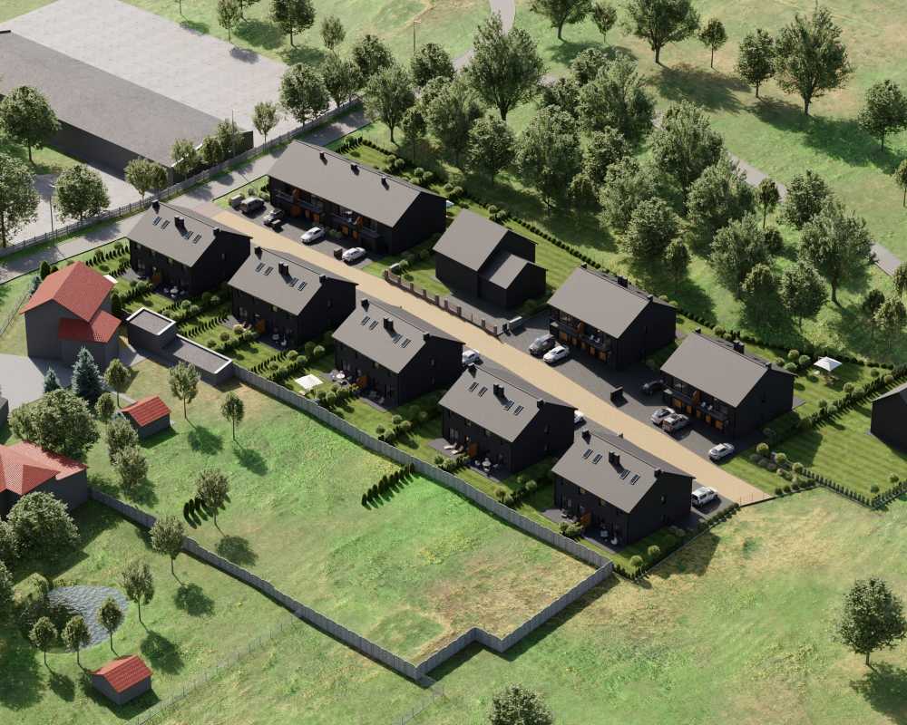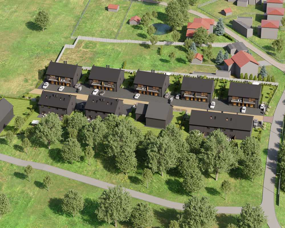 Mieszkania w budynkach 4-lokalowych na parterze mają powierzchnię mieszkalną 62,5 m² oraz tarasy w ogródkach. Lokale na piętrze o powierzchni mieszkalnej 110 m² (piętro + antresola) posiadają przestronne balkony i duże antresole, na których można urządzić np. gabinet do pracy, dodatkową sypialnię czy domową siłownię. Wszystkie lokale mieszkalne w budynkach 4-lokalowych posiadają własny ogrodzony ogródek o powierzchni ok. 70-90 m², w których komfortowo można odpoczywać na świeżym powietrzu, a także część wspólną. W celu zapewnienia prywatności mieszkańcom zamontowane zostały stylowe parawany, oddzielające sąsiadujące tarasy na parterze oraz balkony na piętrze.