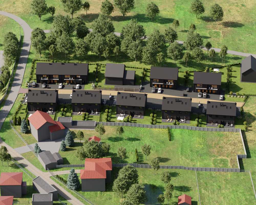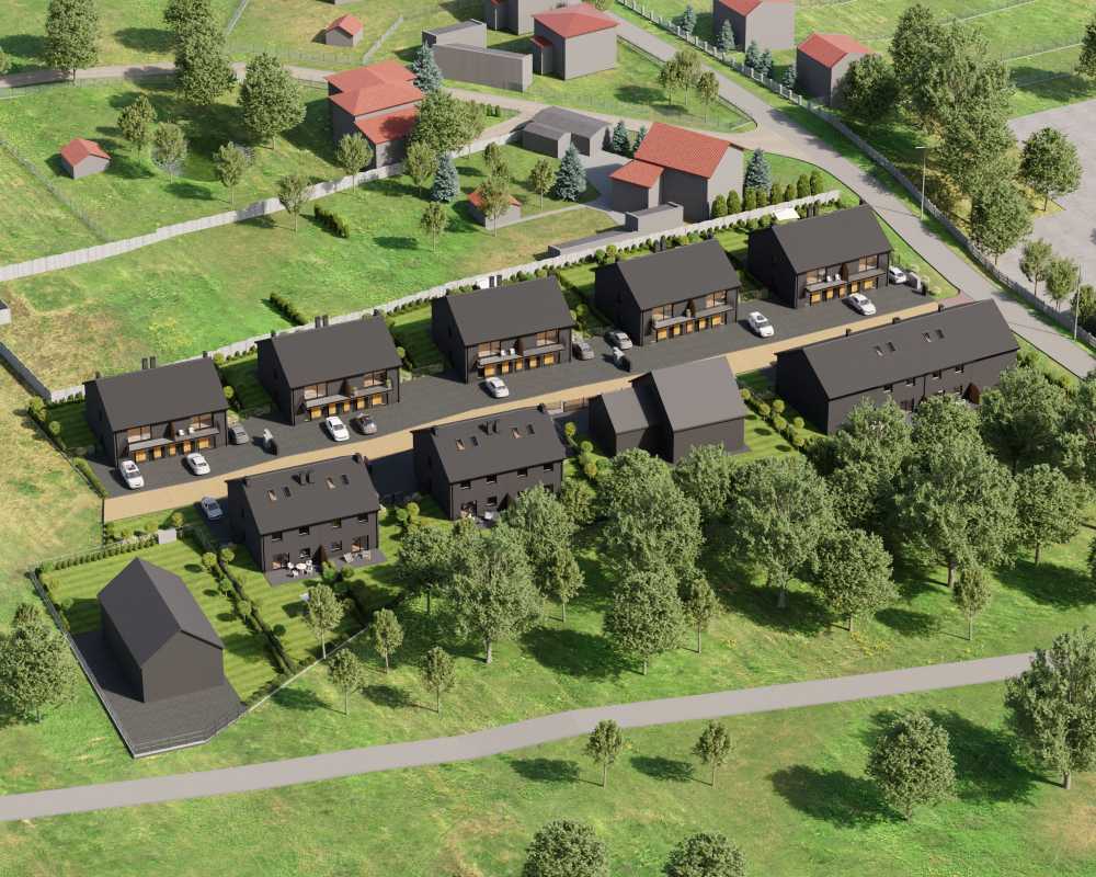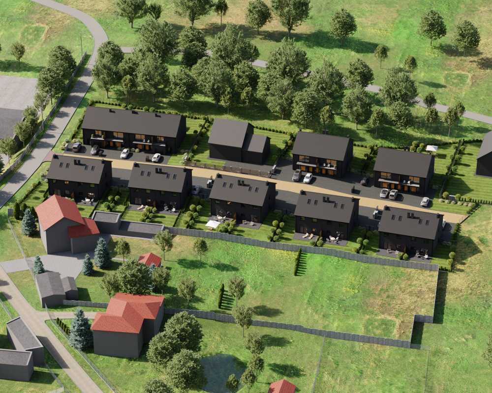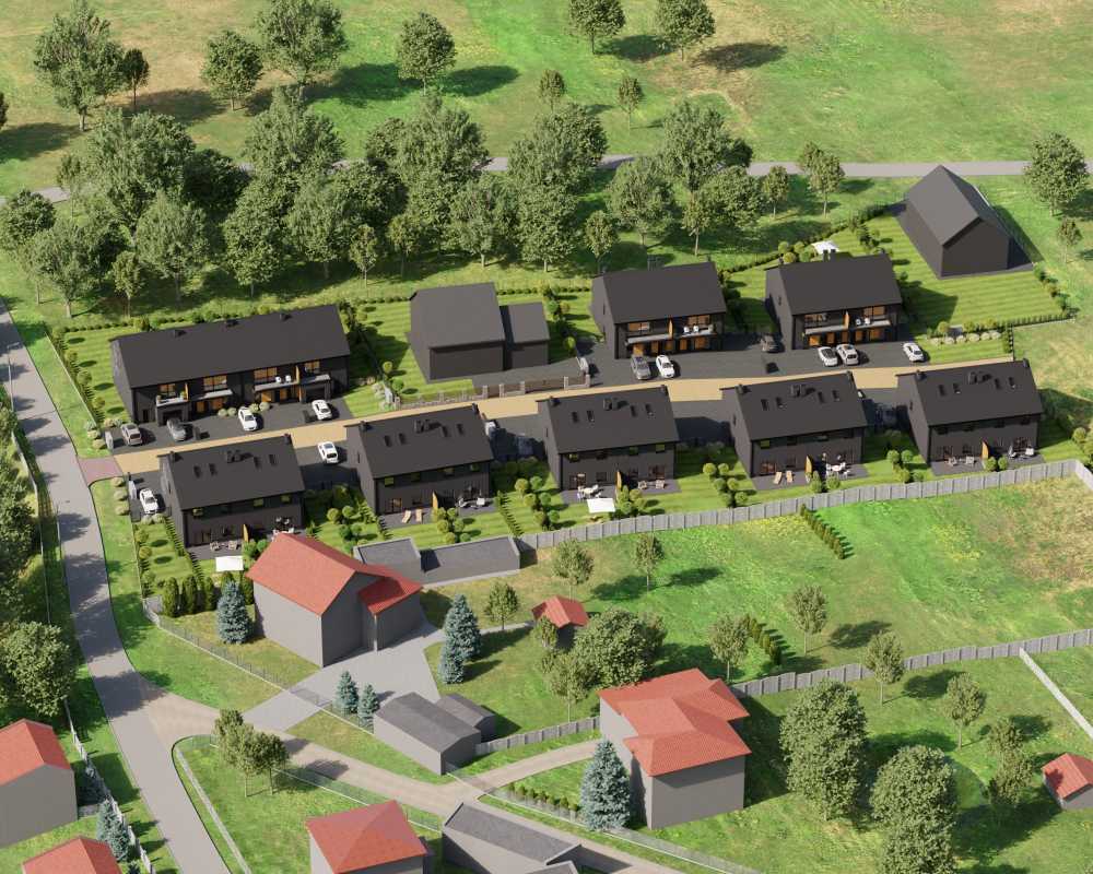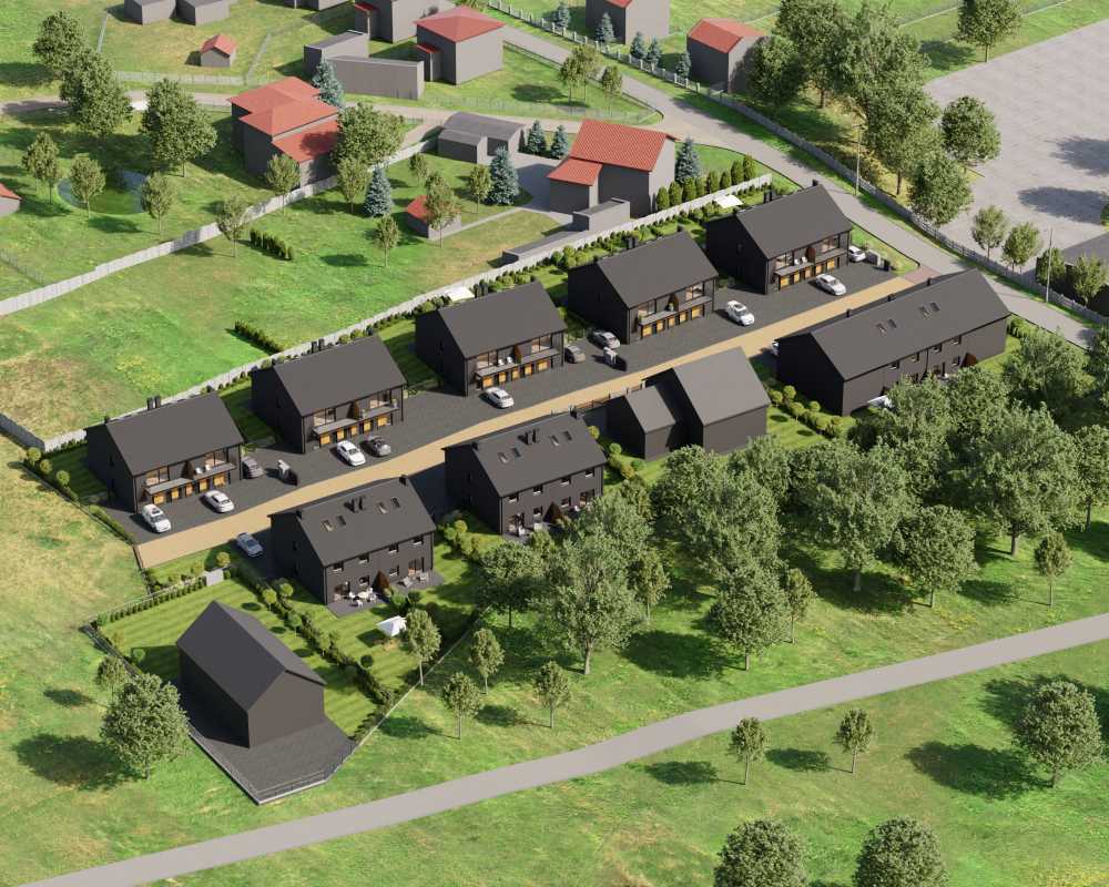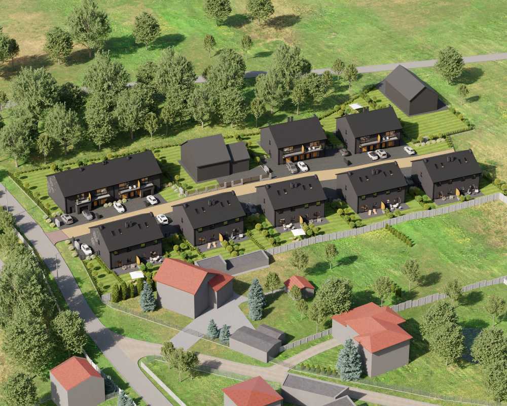 Mieszkania w budynkach 4-lokalowych na parterze mają powierzchnię mieszkalną 62,5 m² oraz tarasy w ogródkach. Lokale na piętrze o powierzchni mieszkalnej 110 m² (piętro + antresola) posiadają przestronne balkony i duże antresole, na których można urządzić np. gabinet do pracy, dodatkową sypialnię czy domową siłownię. Wszystkie lokale mieszkalne w budynkach 4-lokalowych posiadają własny ogrodzony ogródek o powierzchni ok. 70-90 m², w których komfortowo można odpoczywać na świeżym powietrzu, a także część wspólną. W celu zapewnienia prywatności mieszkańcom zamontowane zostały stylowe parawany, oddzielające sąsiadujące tarasy na parterze oraz balkony na piętrze.